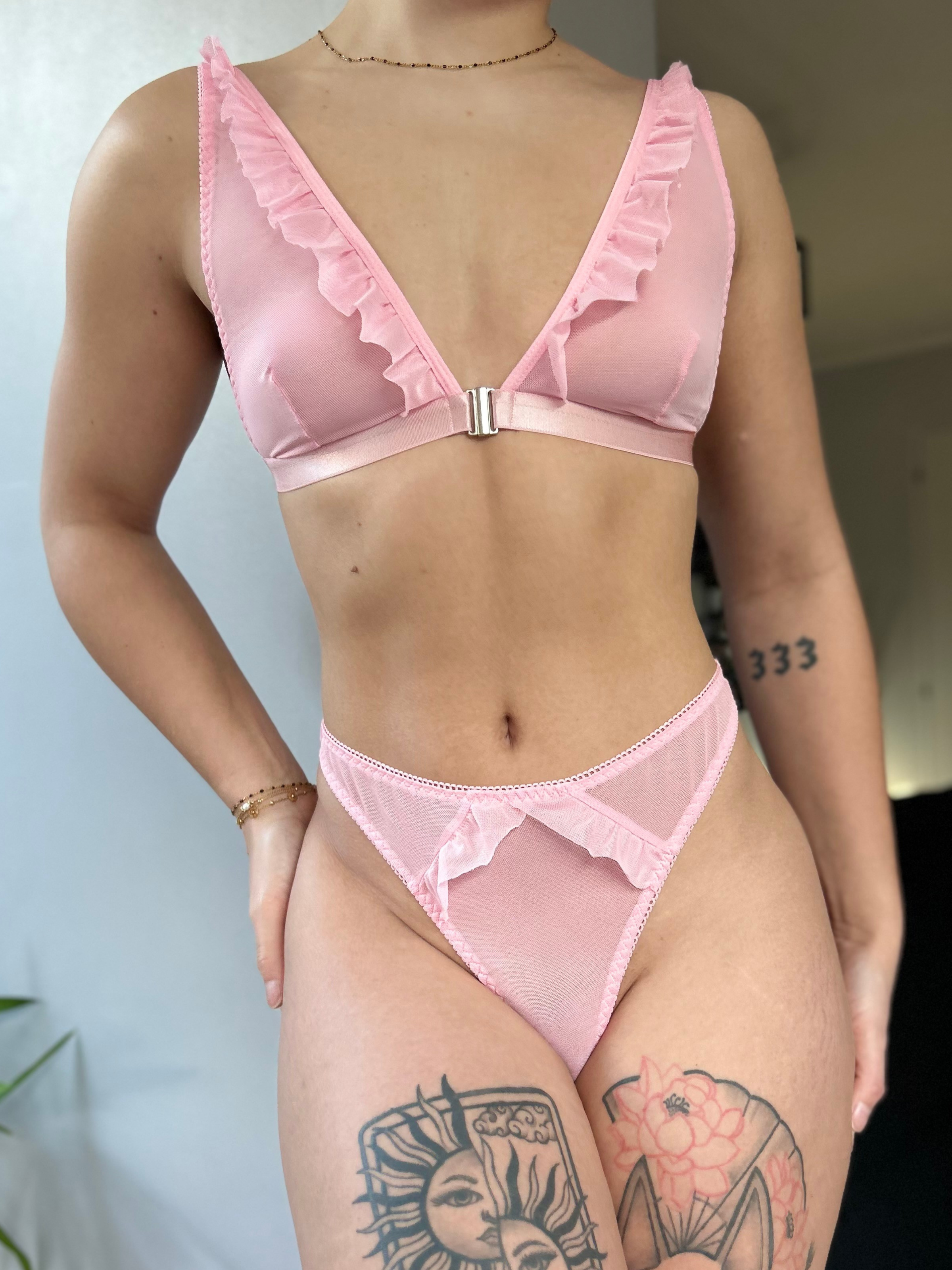• 🎀 Petits volants délicats sur le soutien-gorge et le string, pour une touche coquette irrésistible
